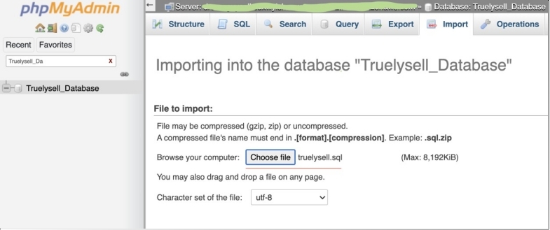 phpMyAdmin will display a page that says: "Database ‘Truelysell_Database’ has been created"